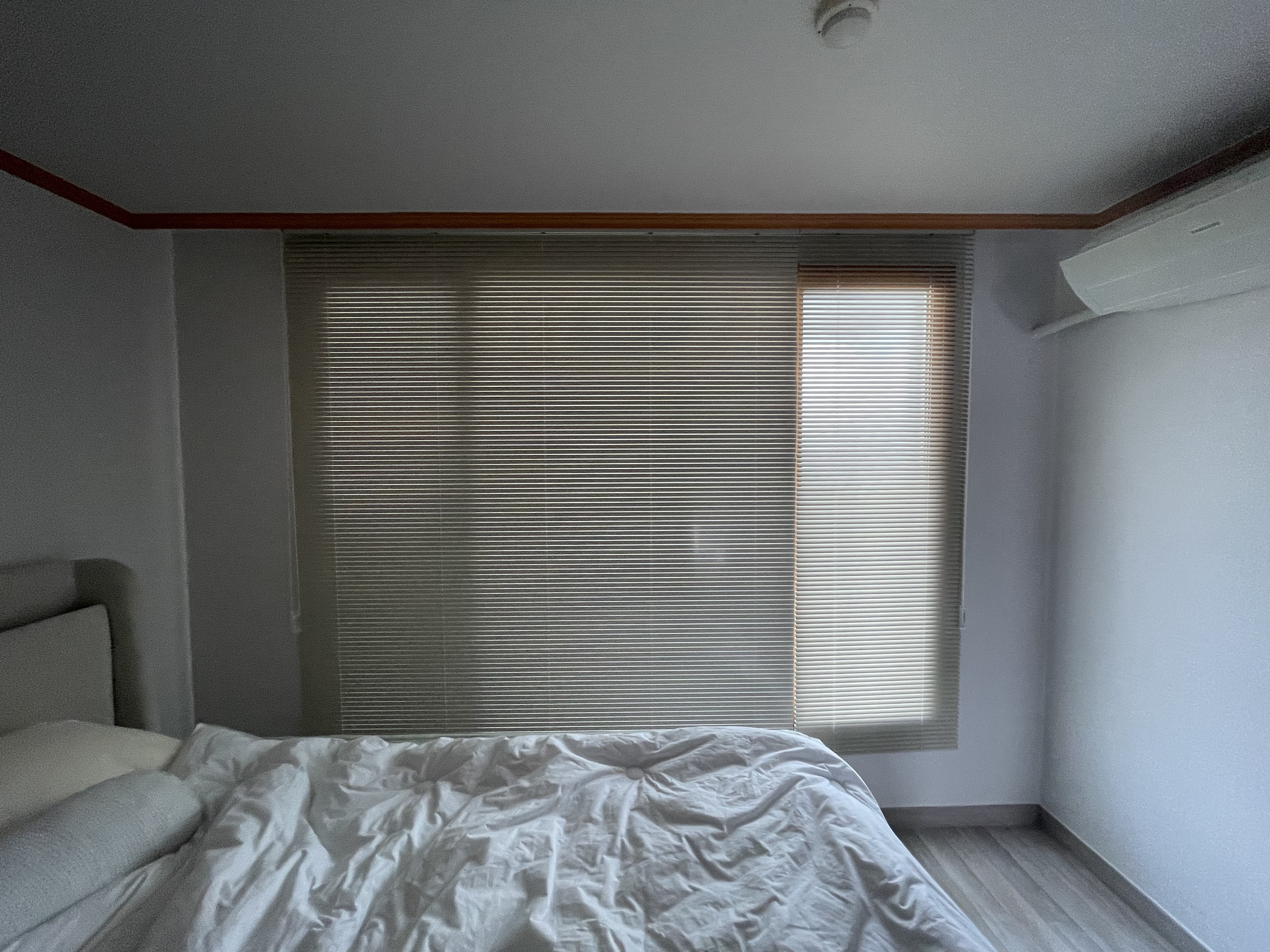 개인적인 휴식이 중요한 안방에는 공간을 군더더기 없이 깔끔하게 연출해 주는 화이트 알루미늄블라인드를 매치했습니다.