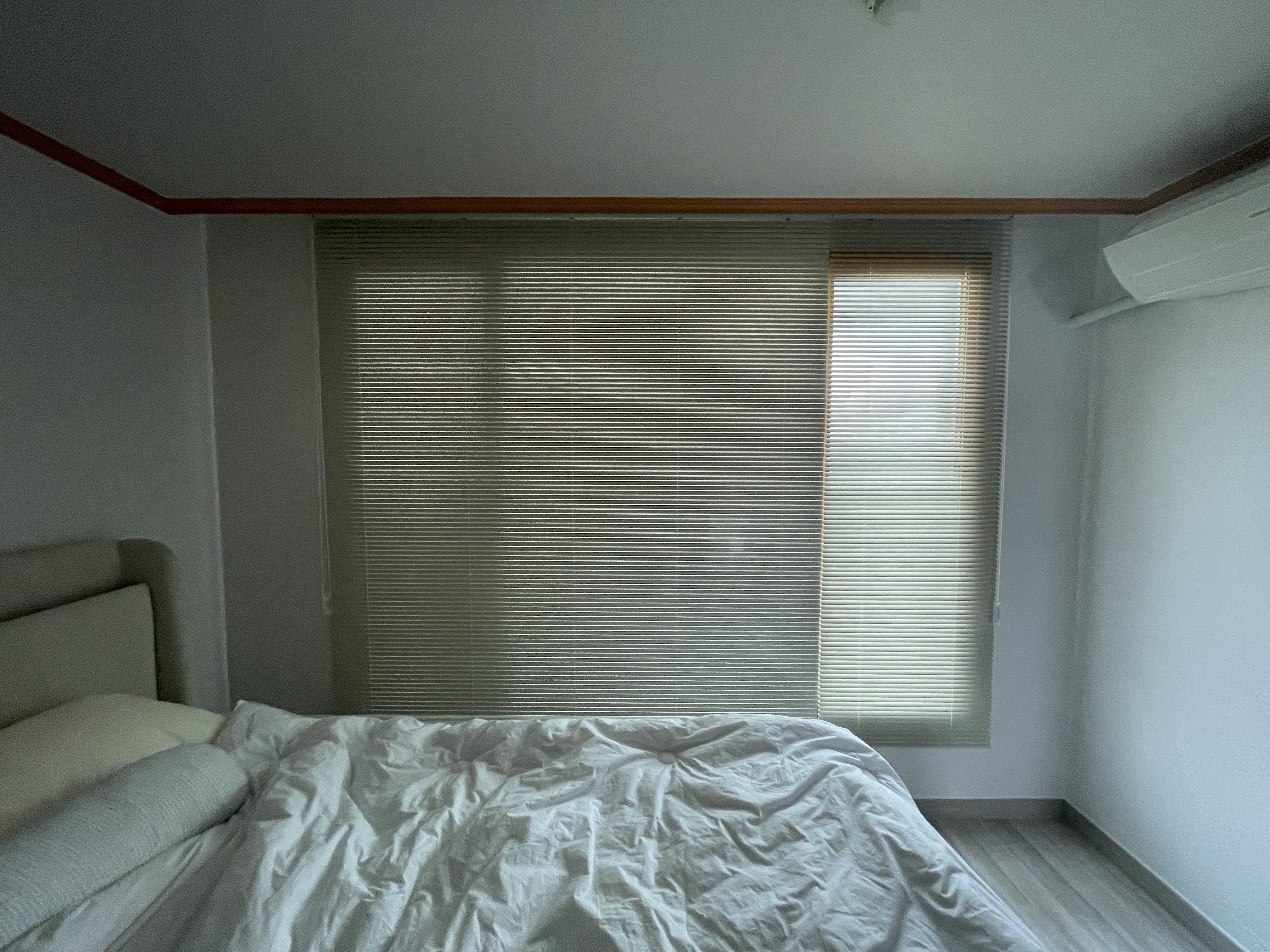 개인적인 휴식이 중요한 안방에는 공간을 군더더기 없이 깔끔하게 연출해 주는 화이트 알루미늄블라인드를 매치했습니다.