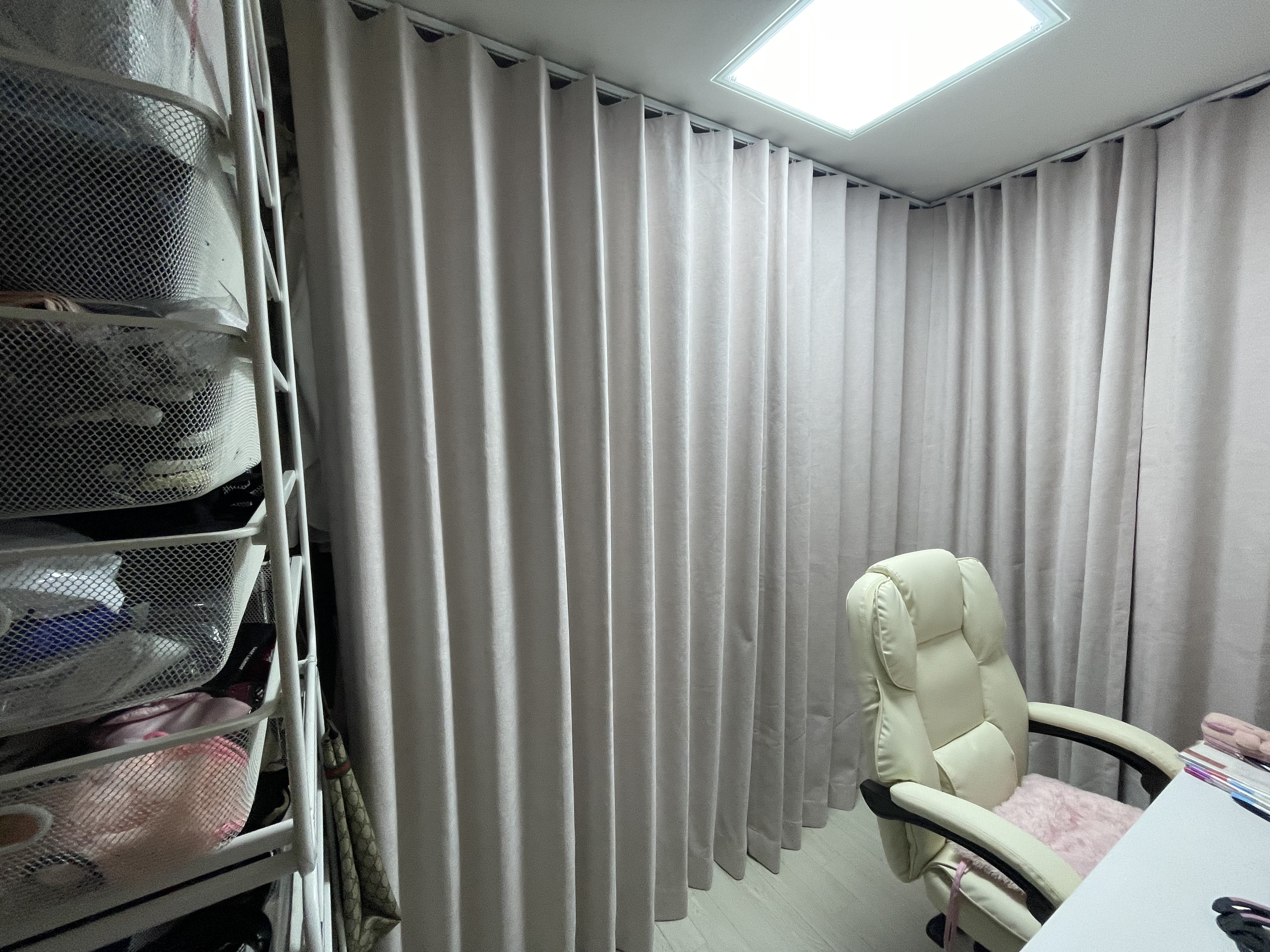 관악구에서 활동하시는 크리에이터 및 스튜디오 운영자 여러분, 방송의 퀄리티를 결정짓는 핵심은 무엇일까요? 바로 '조명'과 '배경'입니다. 아무리 좋은 장비를 써도 자연광이 제멋대로 들어오거나 뒷배경이 지저분하면 화면이 산만해 보이기 십상인데요. 오늘은 빛을 완벽하게 차단하여 조명 효율을 높이고, 동시에 화면에 뽀샤시하게 담기는 '베이비핑크 암막커튼'을 배경으로 설치하여 스튜디오의 분위기를 확 바꾼 시공 사례를 소개해 드립니다.