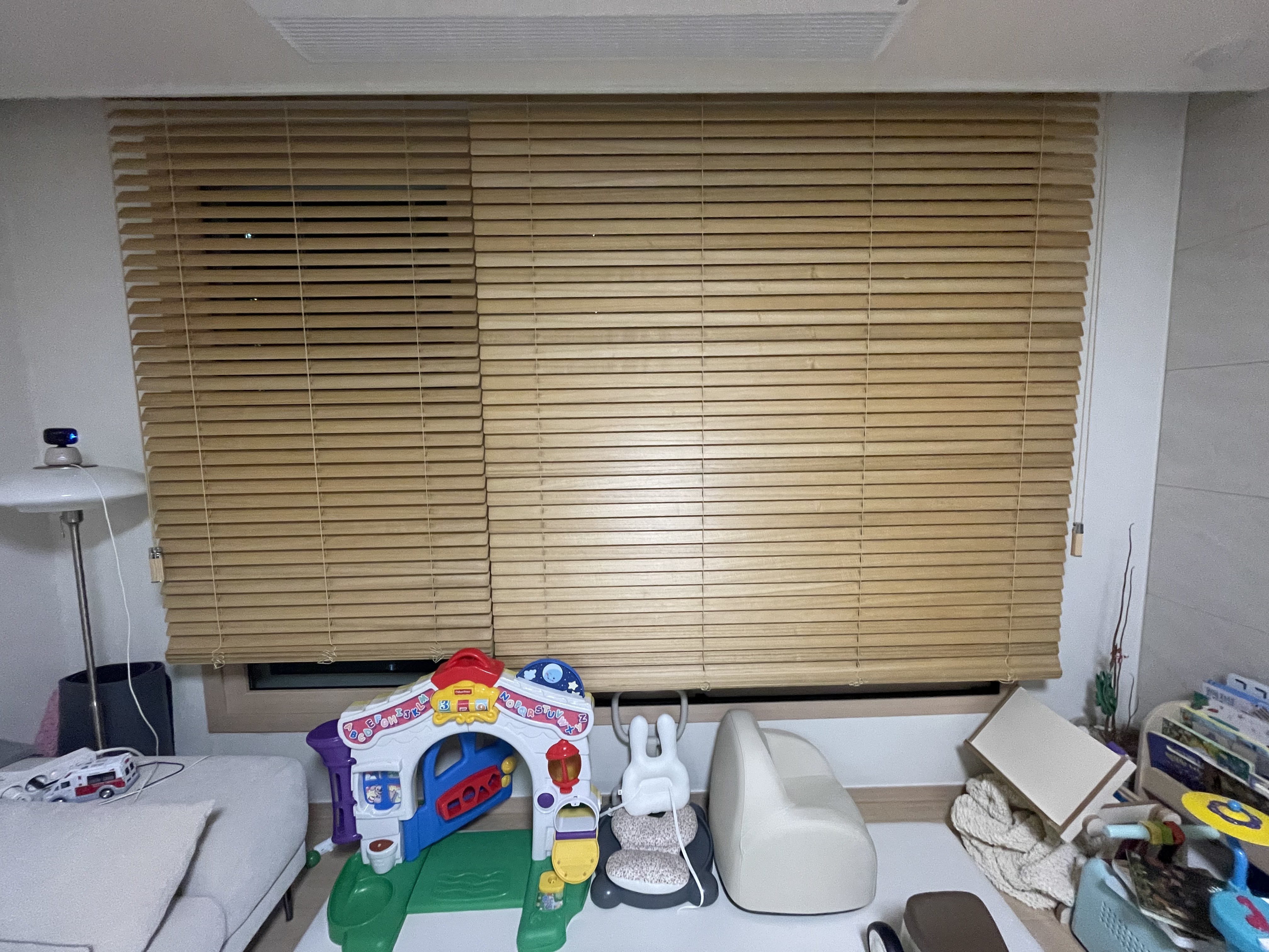 광명 광명역센트럴자이아파트 입주민 여러분, 입주 당시 유행했던 우드블라인드가 이제는 무겁고 답답하게 느껴지시나요? 청소는 힘들고, 올리고 내리기도 번거로워 방치하고 계신 분들이 많을 텐데요. 오늘은 거실을 어둡게 만들던 기존 우드블라인드를 깔끔하게 철거하고, 화사한 '도톰 차르르 쉬폰'과 아이방 '아이보리 암막커튼'으로 교체하여 집안 분위기를 산뜻하고 아늑하게 바꾼 시공 사례를 소개해 드립니다.
