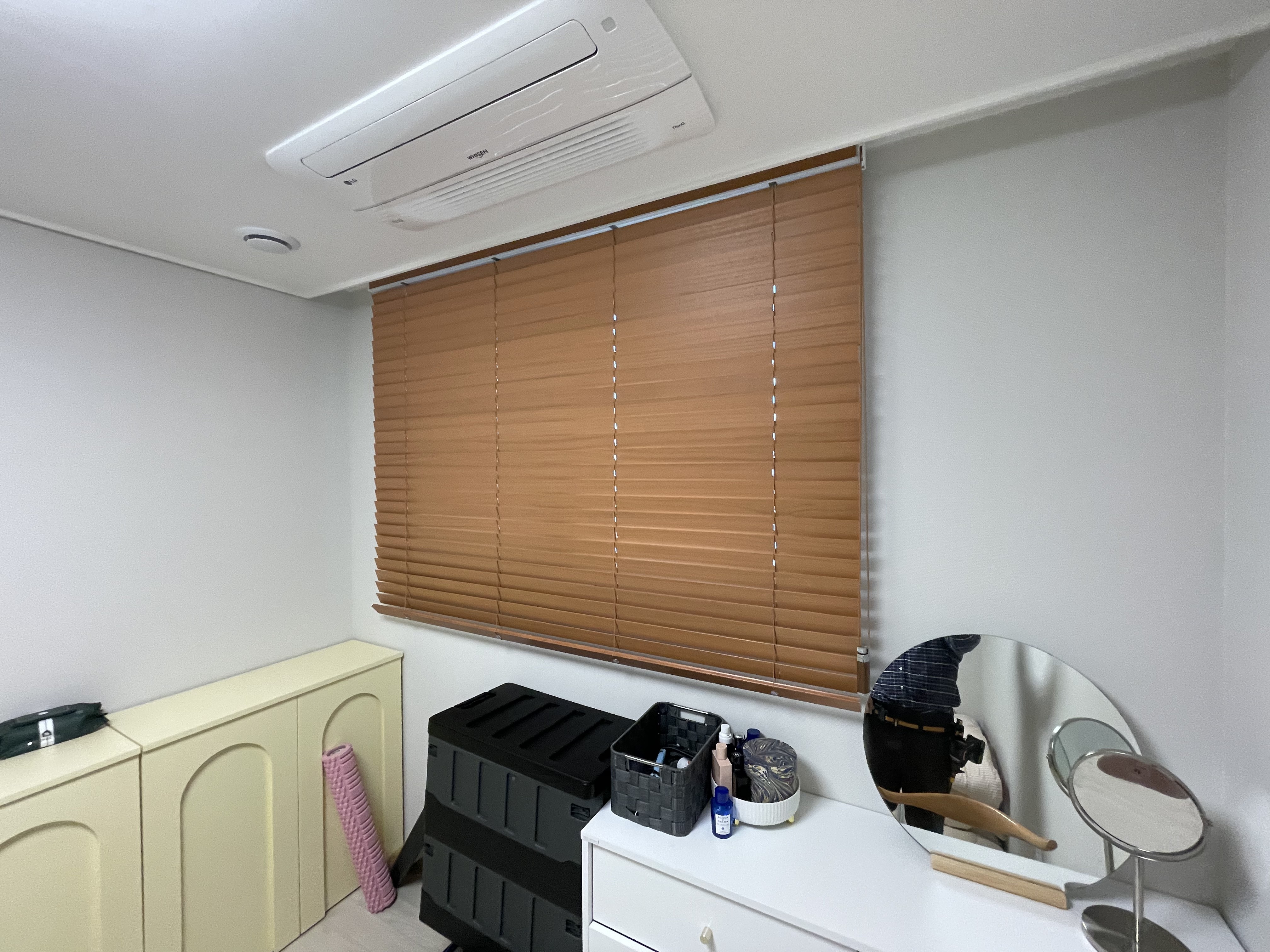 우드와 알루미늄은 무게와 설치 방식이 다르기 때문에 숙련된 기술이 필요합니다. 특히 우드 블라인드는 수평이 맞지 않으면 슬랫이 한쪽으로 쏠릴 수 있습니다. 이번 시공은 프리미엄 커튼·블라인드 업계에서 10년 이상 경험을 쌓은 전문가가 직접 진행했습니다.