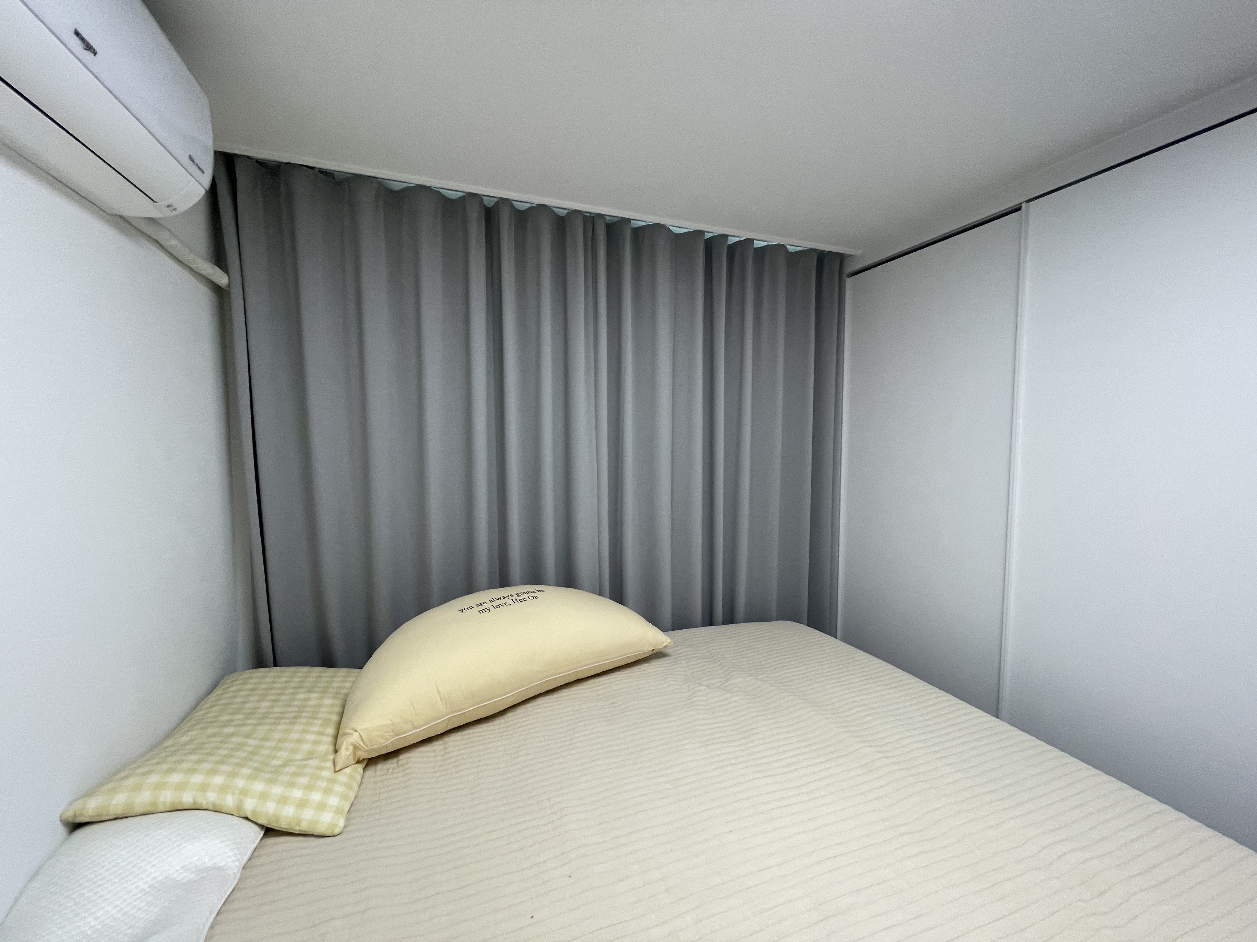 온전한 휴식이 필요한 안방과 아이의 꿈이 자라는 방은 각기 다른 기능이 필요합니다. 안방에는 '기능이 뛰어난' 고밀도 암막커튼을 설치하여 아침 햇살과 야간의 외부 조명을 완벽하게 차단, 깊은 숙면을 취할 수 있는 최적의 환경을 만들었습니다.