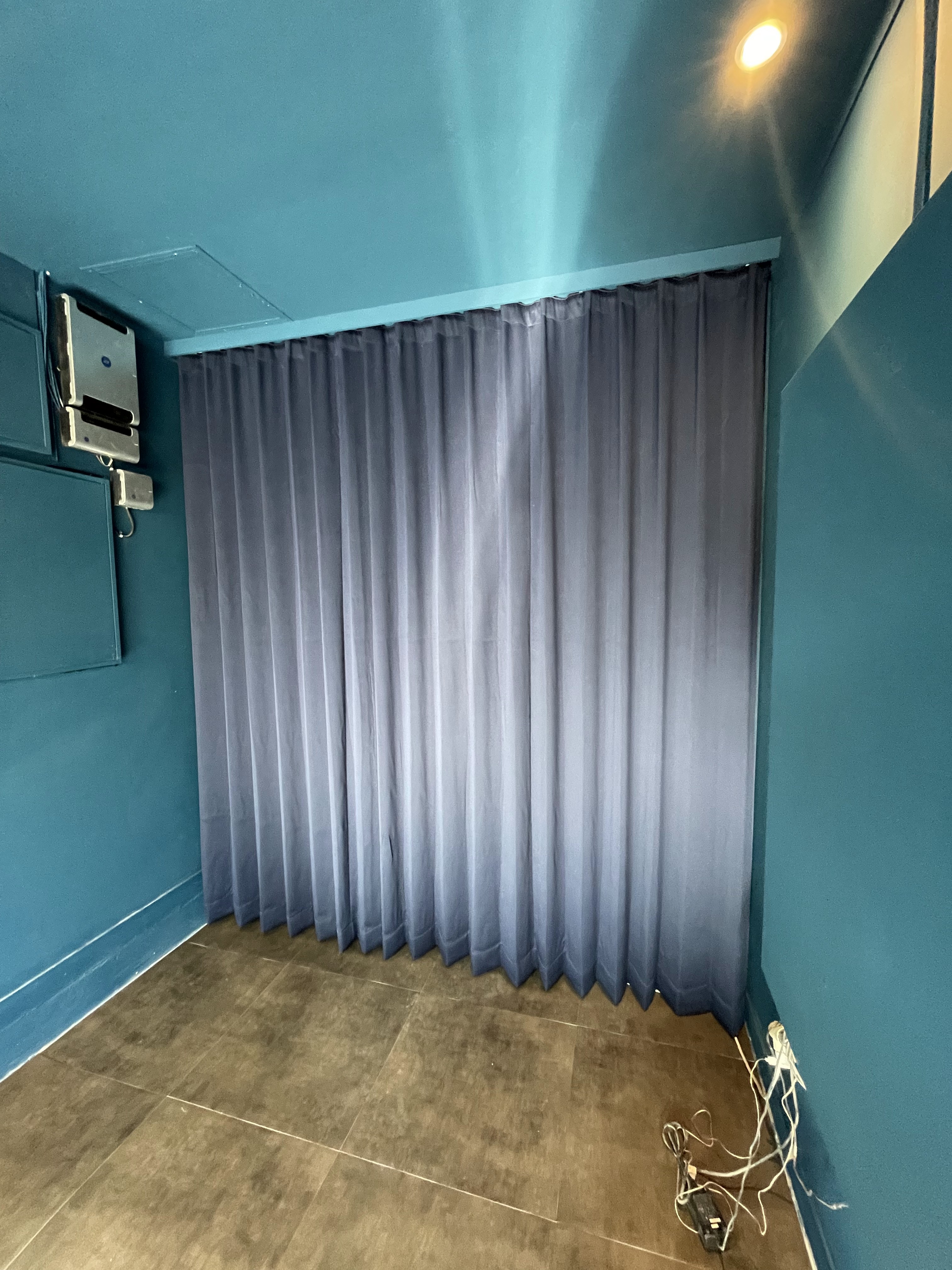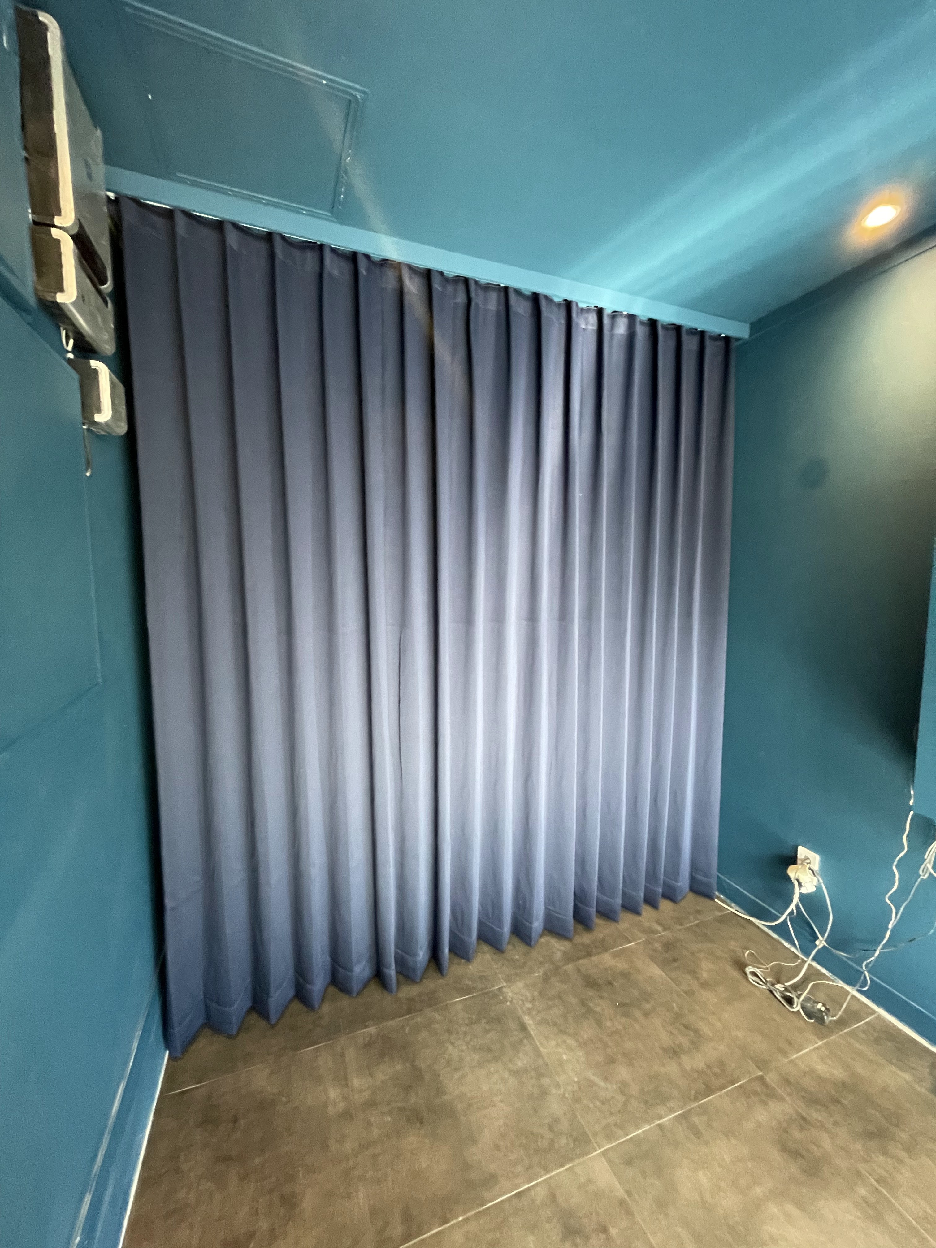 완벽한 암막보다는 적당한 두께감의 생활암막 원단을 사용하여 답답함은 줄이되, 뒤편의 옷가지들은 확실하게 가려주었습니다. 특히 네이비 컬러는 먼지나 오염이 묻어도 티가 잘 나지 않아 관리가 쉽고, 공간에 차분한 신뢰감을 주는 색상이라 사장님께서도 매우 만족해하셨습니다. '꽃피는 커튼'은 공간의 용도에 맞춰 가장 효율적인 원단을 제안합니다.