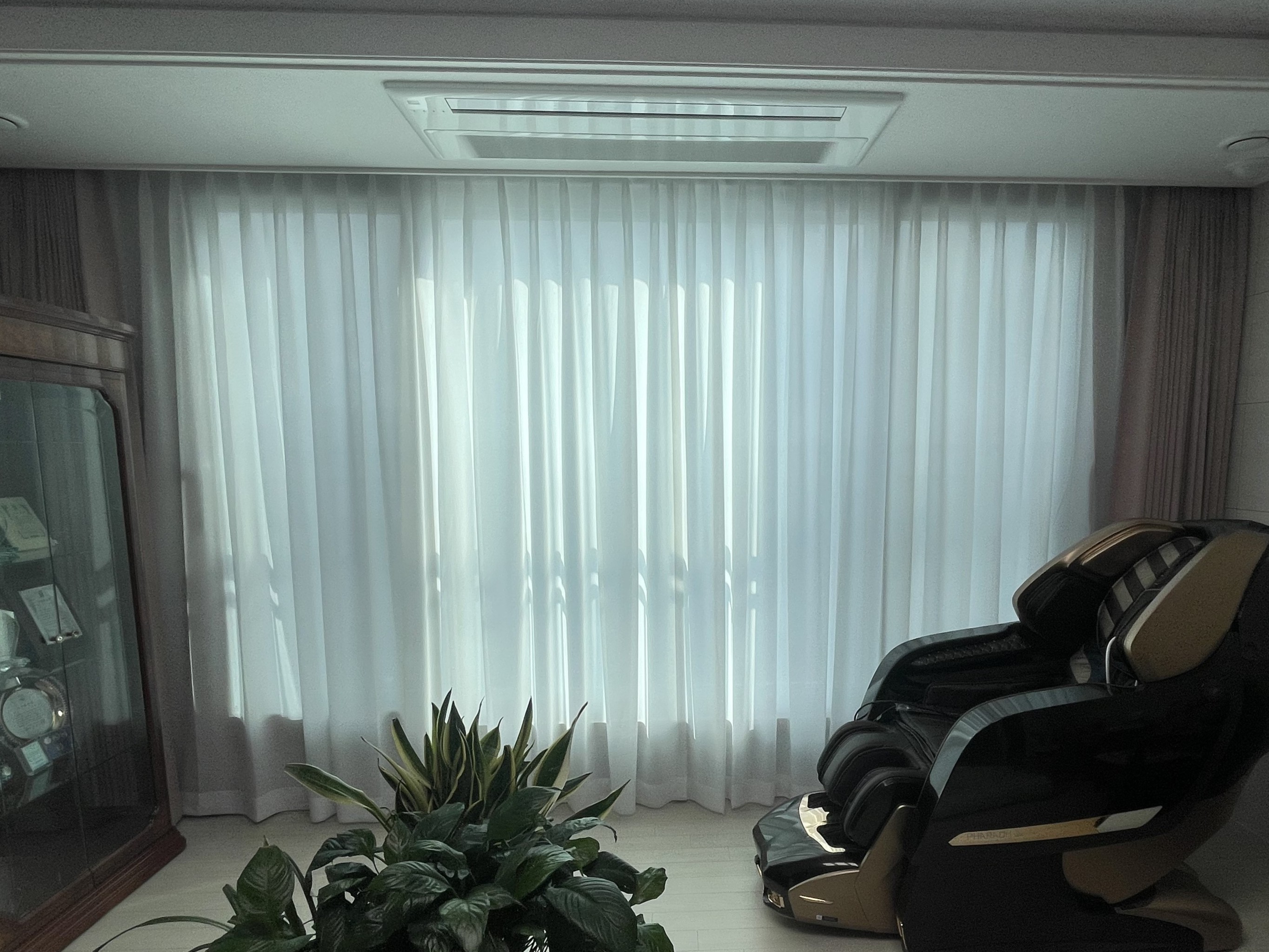 이중 커튼에 고급 블라인드인 트리플쉐이드까지, 전체를 프리미엄 라인으로 맞추면 견적이 부담스러울 수 있습니다. 하지만 시흥 제일풍경채더숲 고객님께서는 예상보다 훨씬 '합리적인 가격'에 집안 전체를 업그레이드했다며 놀라워하셨습니다.