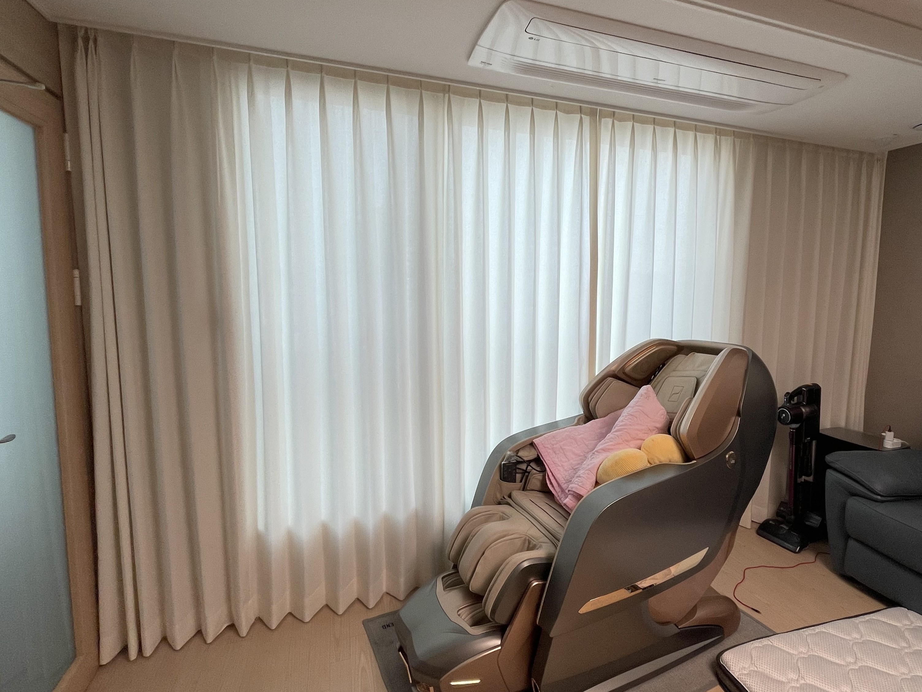 "맞춤 화이트 커튼은 관리가 어렵고 비싸지 않을까?" 고민되시나요? 이번 안산 롯데캐슬골드파크 고객님께서는 퀄리티 높은 원단과 맞춤 시공을 받으셨음에도 예상보다 훨씬 '합리적인 가격'에 매우 놀라워하셨습니다.