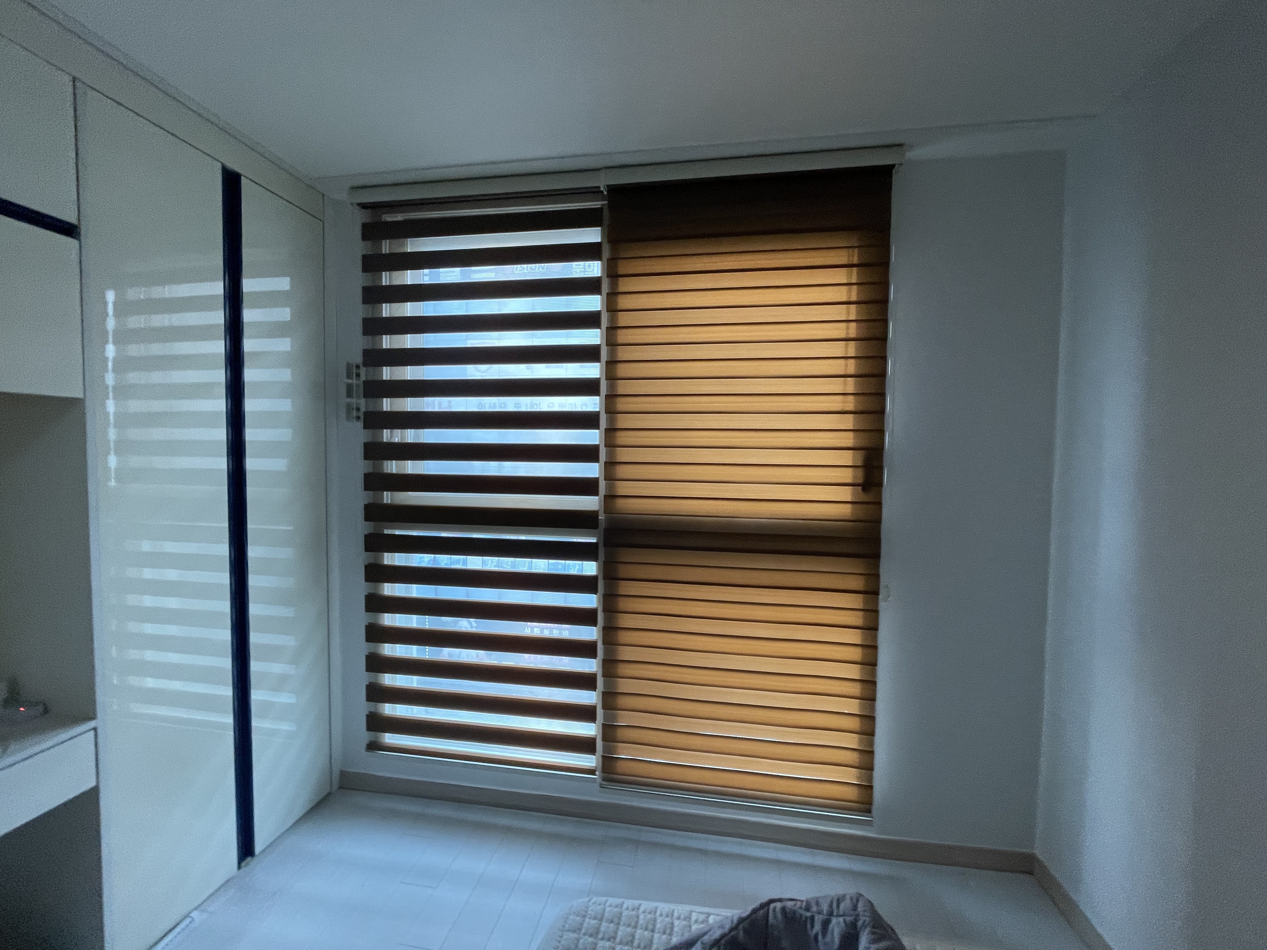 안산 태인오피스텔 입주민 여러분, 좁은 공간일수록 창가 인테리어 하나만 바꿔도 집안 분위기가 확 달라진다는 사실, 알고 계셨나요? 오피스텔은 휴식과 생활이 공존하는 곳이기에 사생활 보호는 물론 아늑한 분위기 연출이 필수적입니다. 오늘은 세련된 무드를 더해주는 '브라운 콤비블라인드'와 편안한 숙면을 도와주는 '아이보리 암막커튼'을 시공하여, 감성과 실용성을 모두 잡은 오피스텔 홈스타일링 사례를 소개해 드립니다.