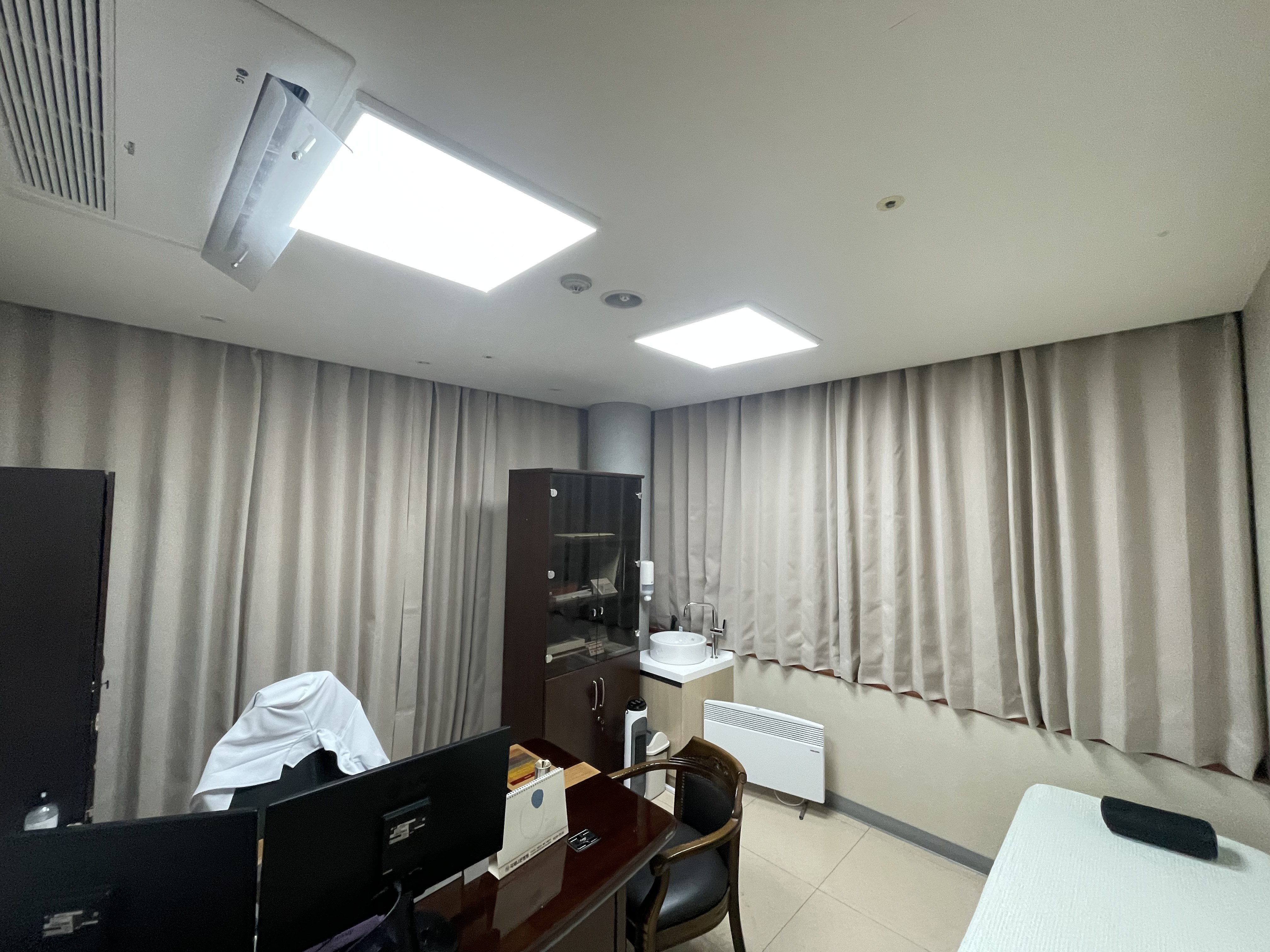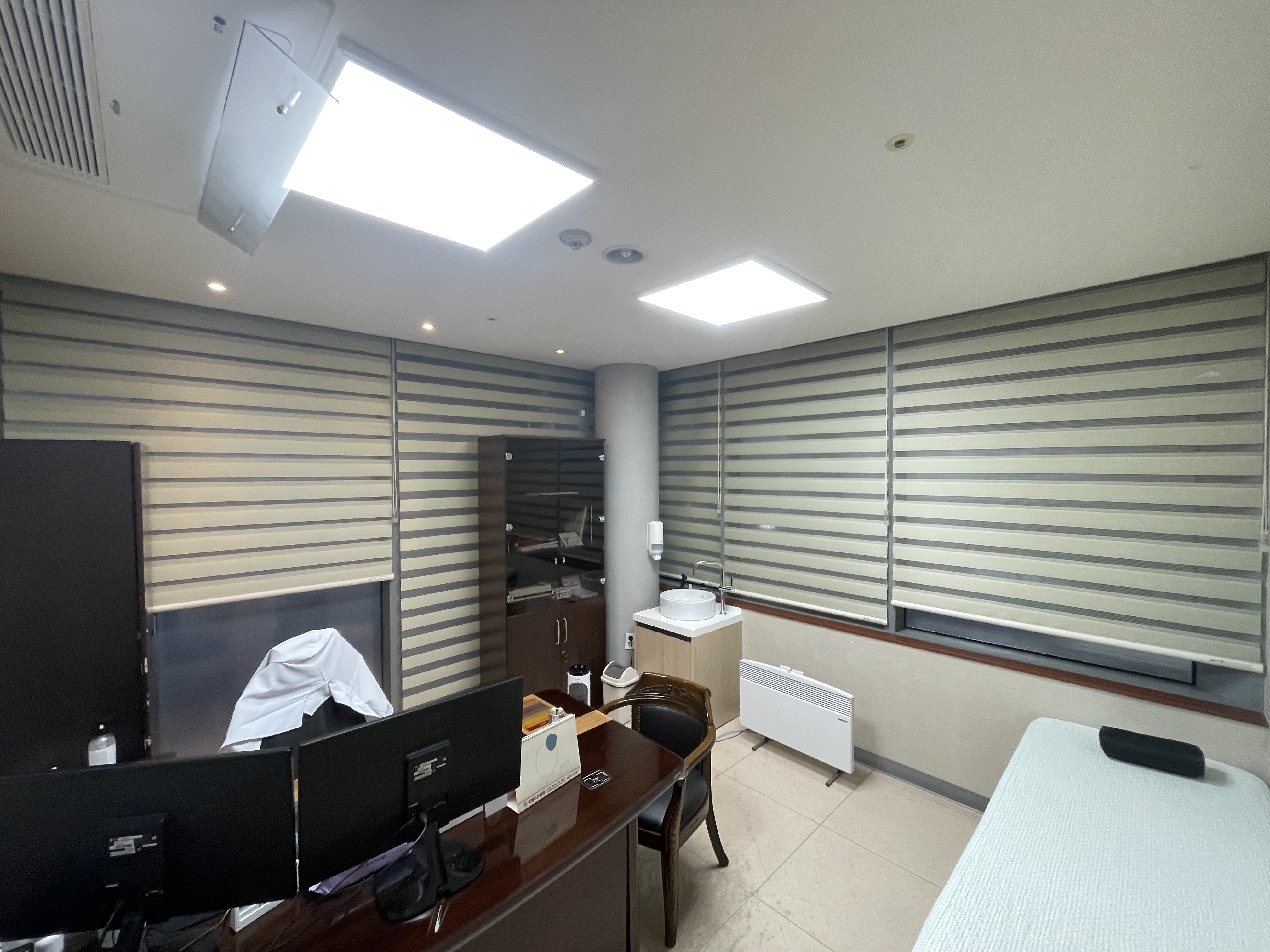 병원은 천장에 의료 장비 레일이나 각종 배관, 시스템 에어컨 등이 복잡하게 얽혀 있어 시공 난이도가 매우 높습니다. 이번 시공은 프리미엄 커튼·블라인드 업계에서 10년 이상 경험을 쌓은 전문가가 직접 진행했습니다.