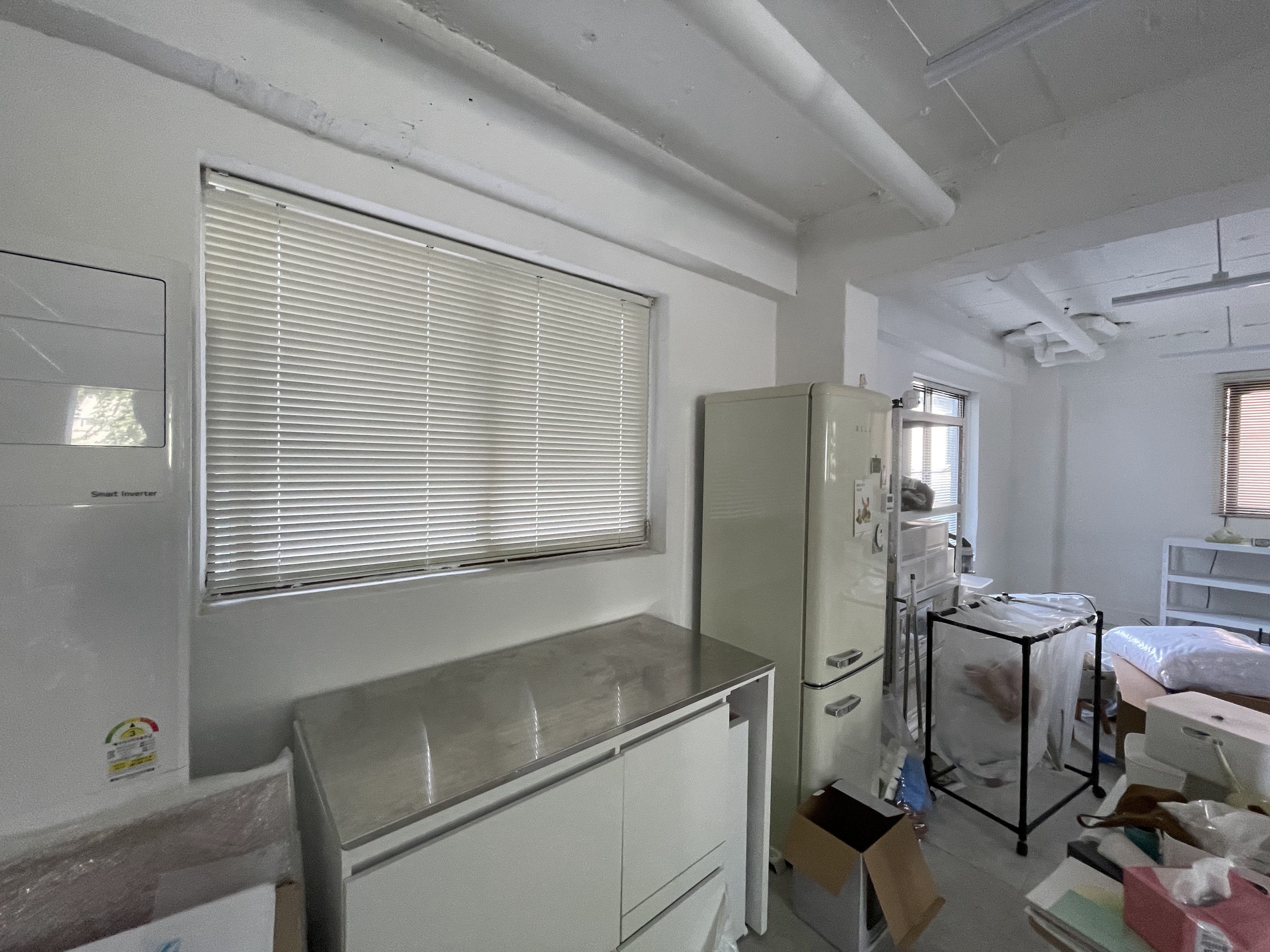 수강생들이 모여 수업을 듣거나 완성된 작품을 촬영하는 공간에는 '인테리어 디자인이 잘 어울리는' 암막 롤스크린을 시공했습니다. 공방의 차분하고 정적인 분위기를 해치지 않도록 군더더기 없는 심플한 디자인을 선택했습니다.