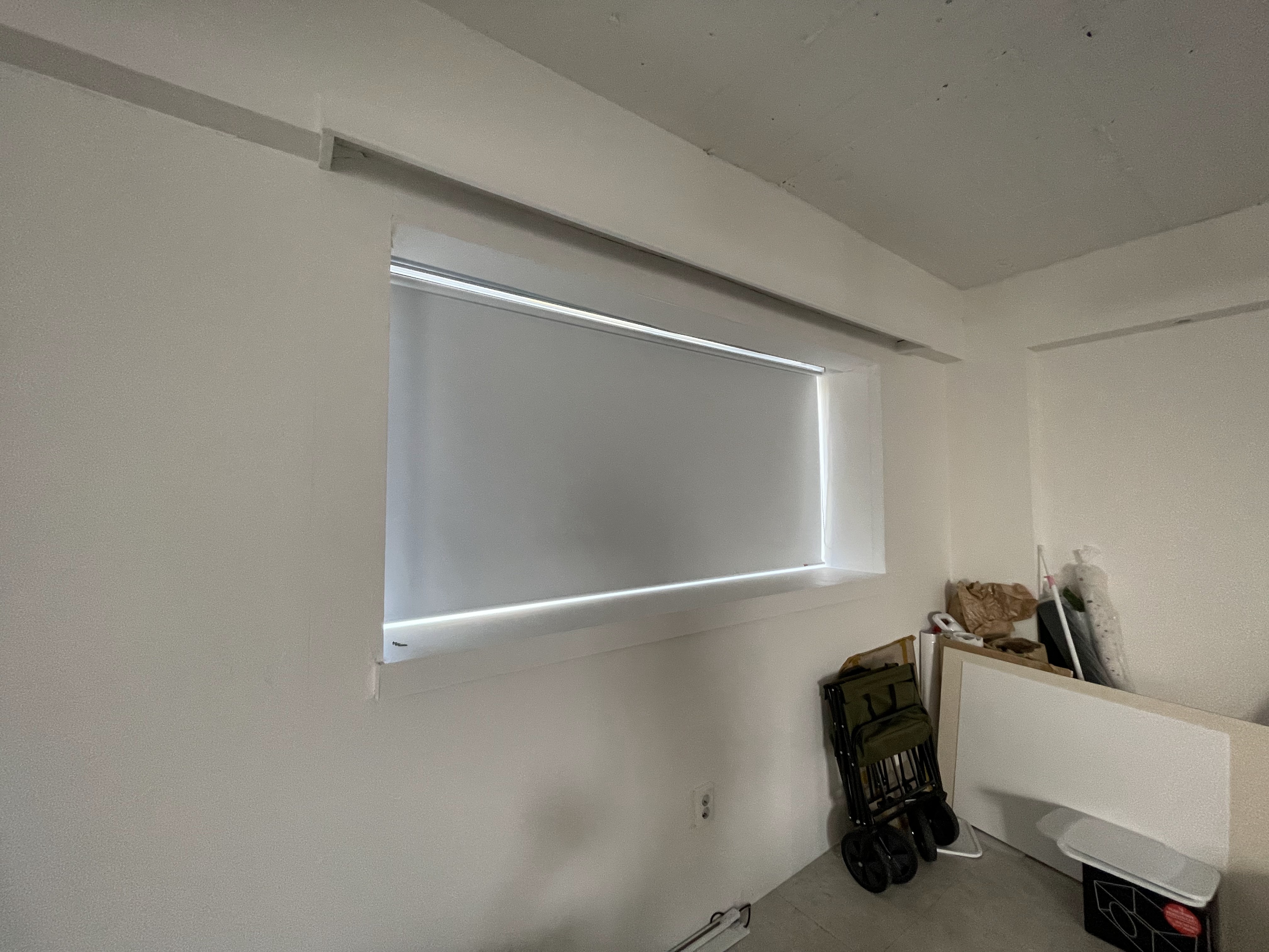 특히 낮 시간대 강한 햇빛은 작업 시 눈의 피로를 유발하고 도자기의 색감을 왜곡할 수 있습니다. 이때 암막 기능을 갖춘 롤스크린은 빛을 완벽하게 차단하여 수업의 집중도를 높여줍니다. 벽면과 톤 앤 매너를 맞춘 컬러 선정으로 공간이 더욱 넓고 정돈되어 보이는 시각적 효과까지 더했습니다.