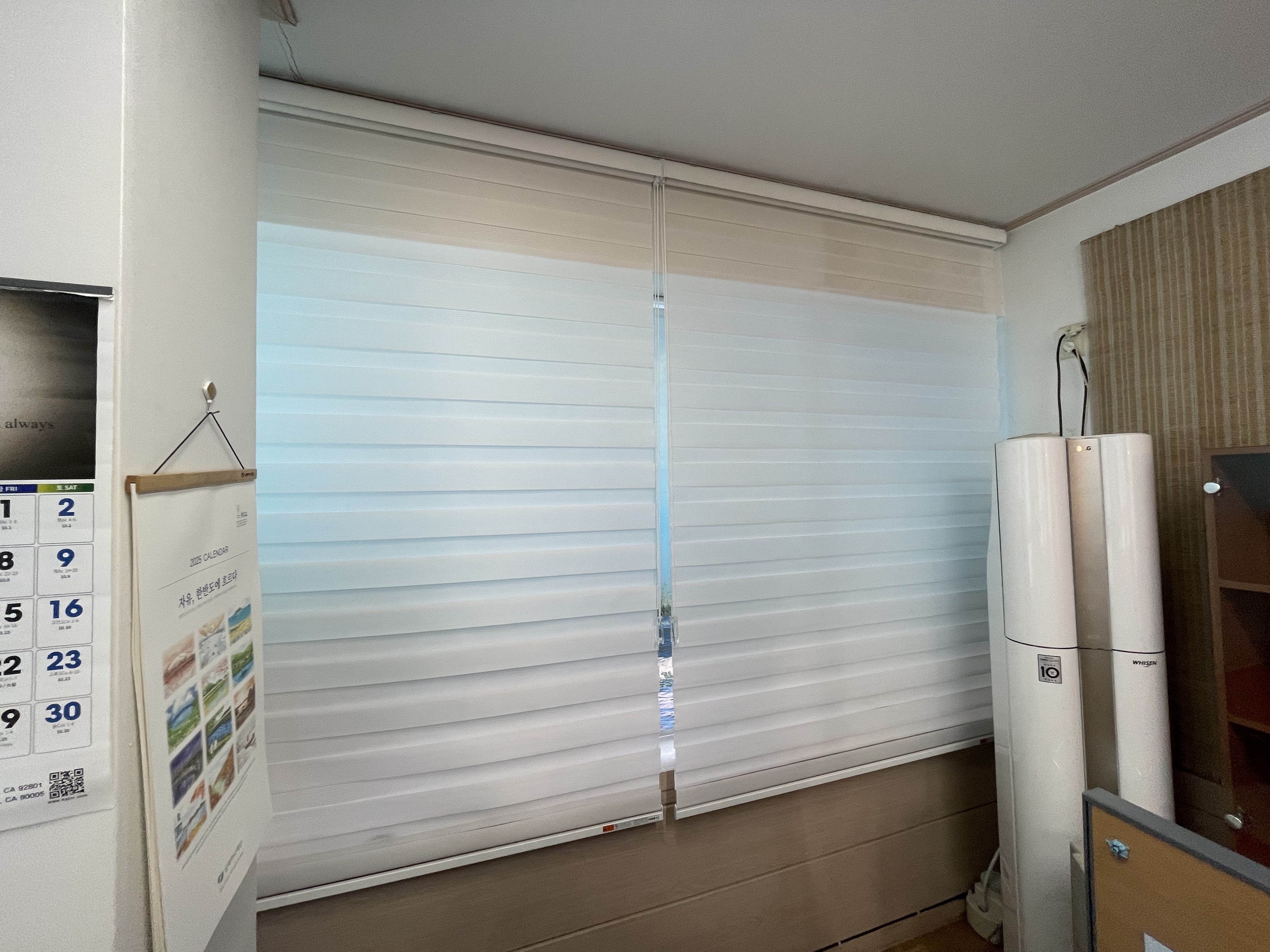 콤비블라인드는 줄 하나로 망사와 원단을 교차시켜 채광과 통풍을 손쉽게 조절할 수 있어 관리가 매우 편리합니다. 특히 화이트 컬러는 오염이 눈에 띌까 걱정하시지만, 특수 코팅된 원단을 사용하여 먼지가 잘 타지 않고 내구성이 뛰어나 많은 사람이 오가는 공용 공간에 최적화된 선택입니다.
