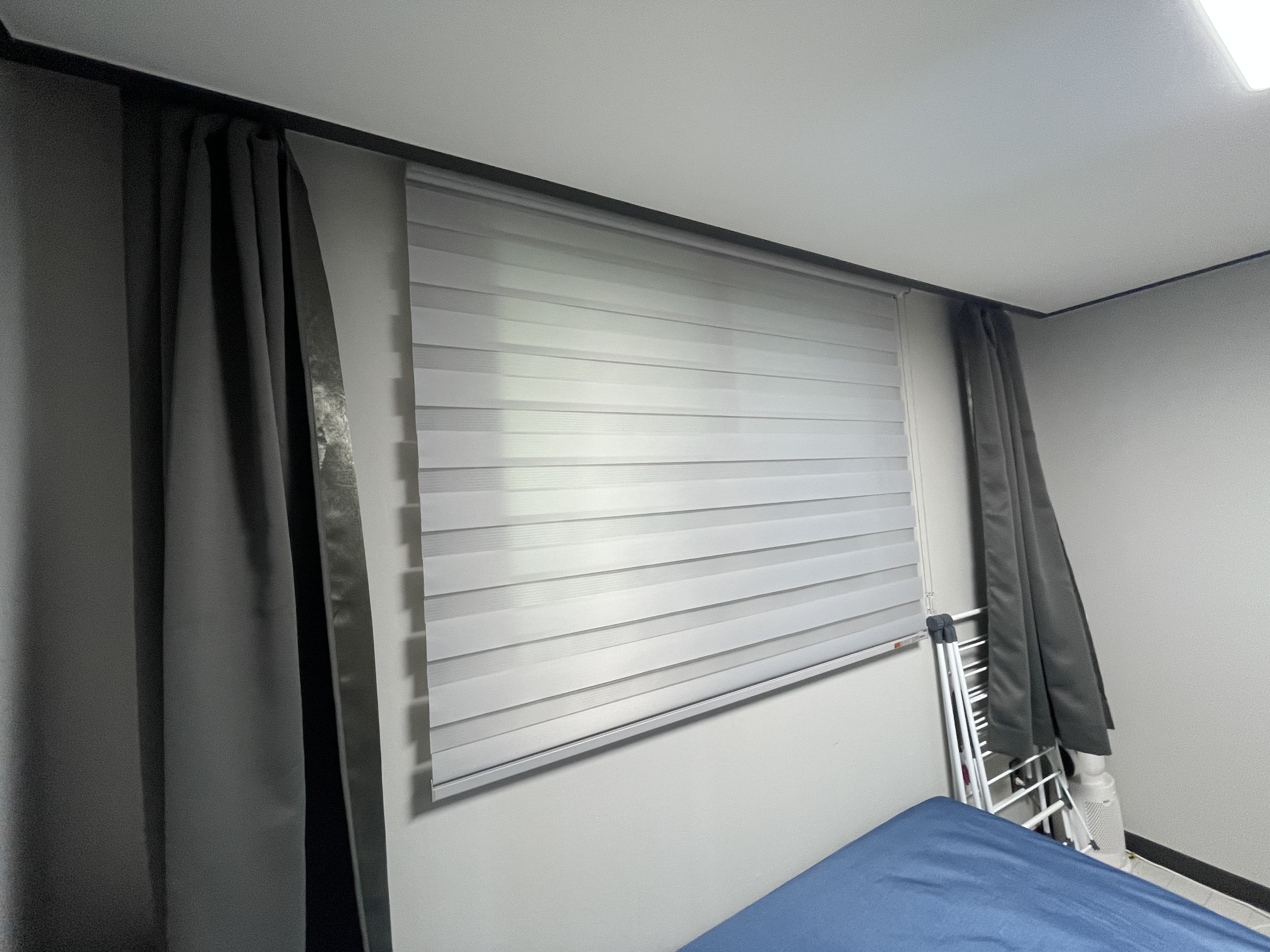 대동아파트와 같은 연식이 있는 아파트는 창틀이 휘어있거나 천장 콘크리트가 단단해 설치가 까다로운 경우가 많습니다. 이번 시공은 프리미엄 커튼·블라인드 업계에서 10년 이상 경험을 쌓은 전문가가 직접 방문하여 진행했습니다.