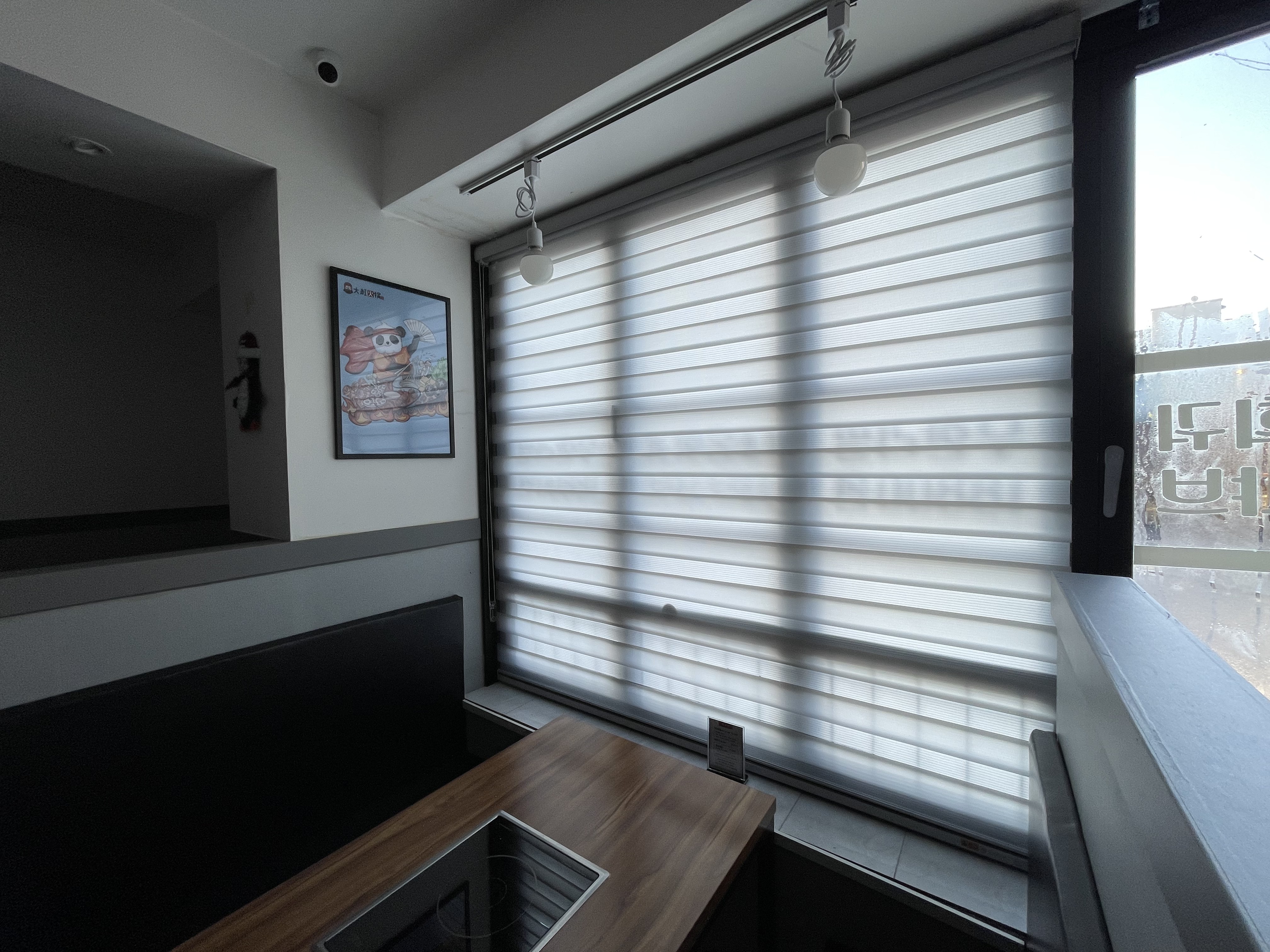 인천 서구의 맛집 대흥샤브에서 매장을 찾아주시는 손님들의 편안한 식사 시간을 위해 블라인드 시공을 의뢰하셨습니다. 음식점은 강한 햇빛을 막으면서도 음식 냄새나 열기가 잘 빠져나가도록 통풍에도 신경을 써야 하는데요. 오늘은 이 두 가지 기능을 모두 갖춘 '라이트그레이 콤비블라인드'를 설치하여, 매장의 분위기를 한층 더 위생적이고 모던하게 바꾼 시공 사례를 소개해 드립니다.