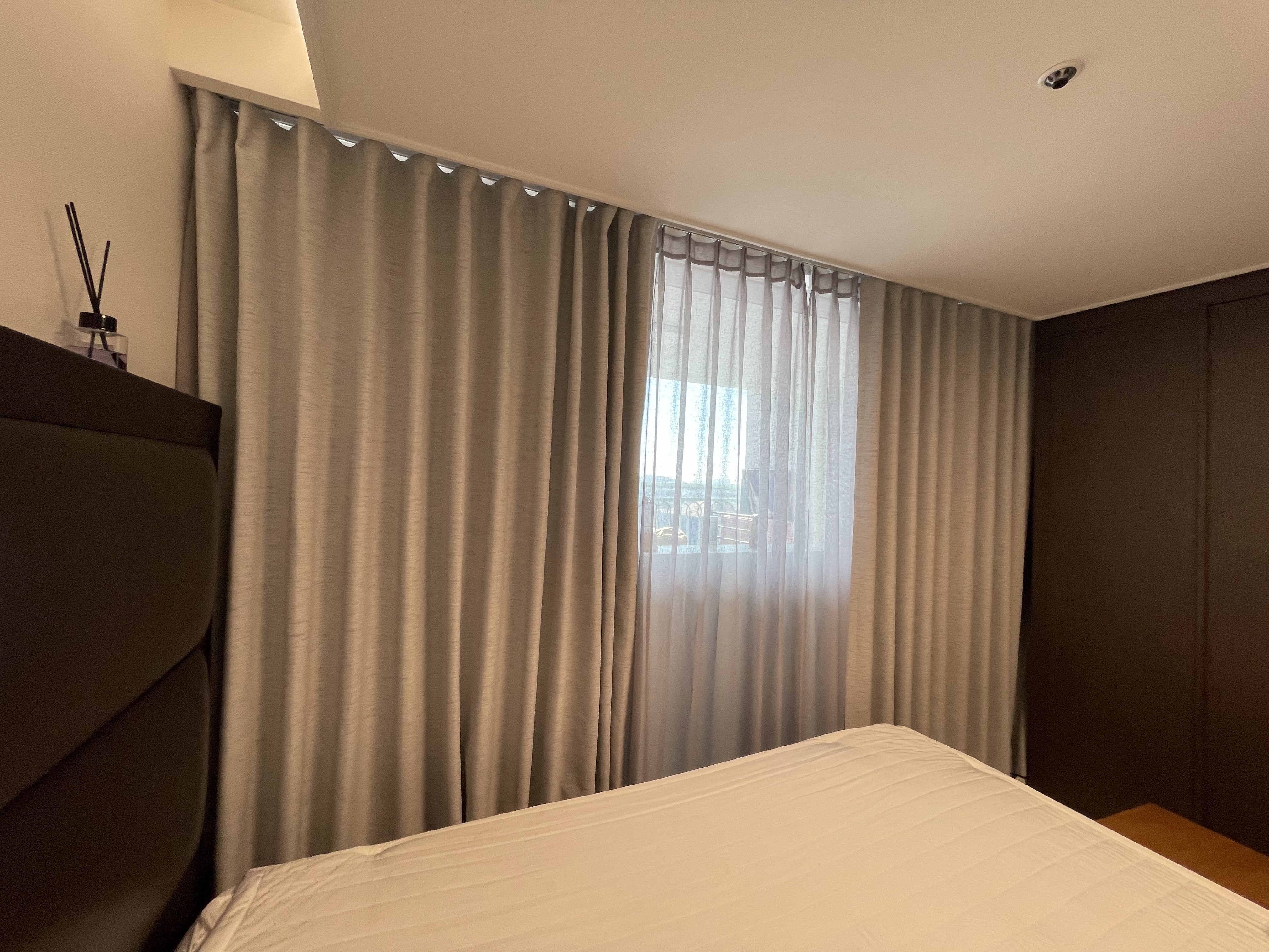 이중 커튼(겉지+속지) 시공은 두 커튼 사이의 간격과 레일의 설치 위치가 매우 중요합니다. 자칫하면 커튼끼리 간섭이 생겨 여닫을 때 불편할 수 있기 때문입니다. 이번 현장은 프리미엄 커튼·블라인드 업계에서 10년 이상 경험을 쌓은 전문가가 직접 시공했습니다.