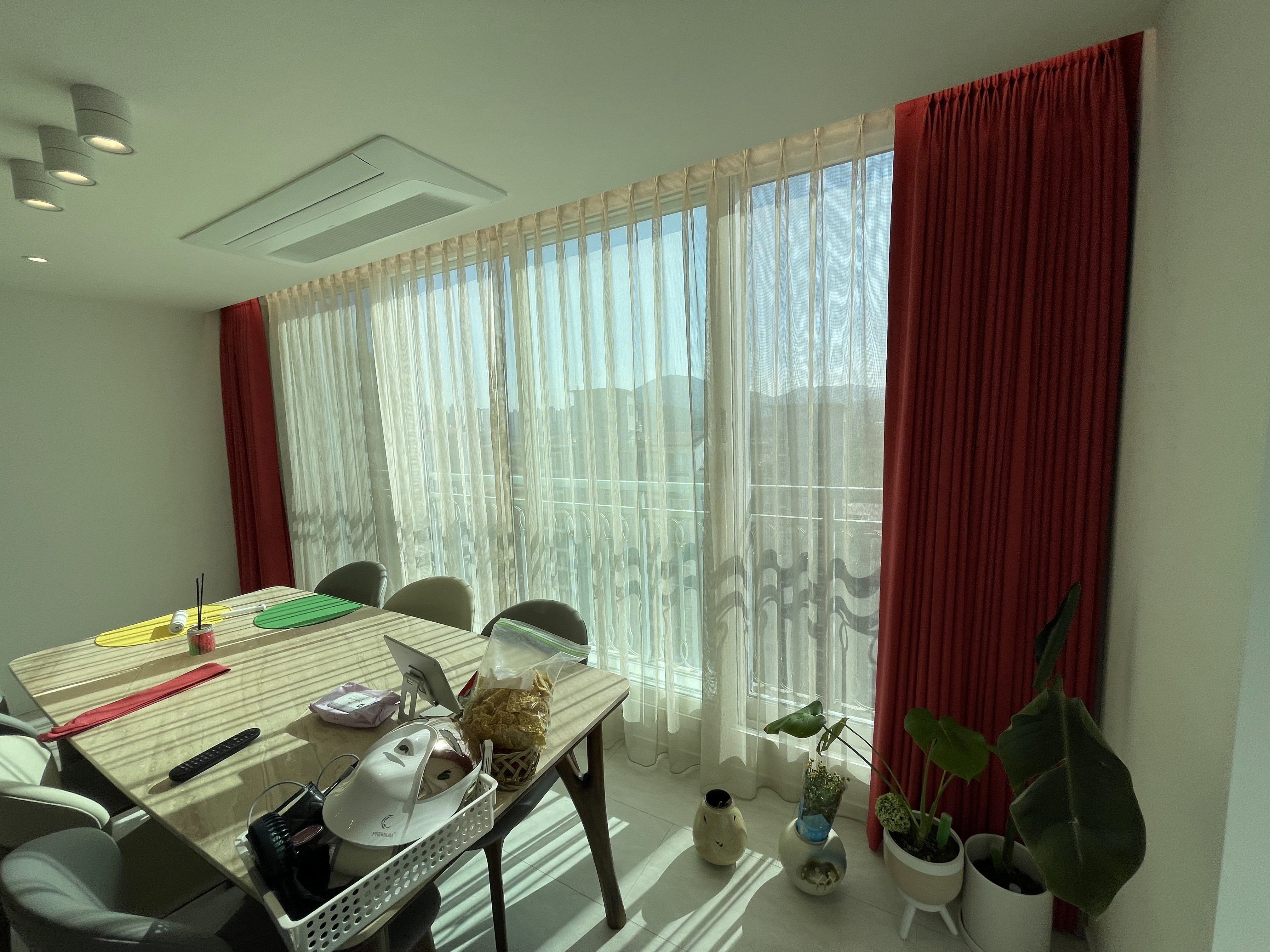 인천 서구 원당 풍림아이원아파트 레드 포인트 커튼, 베이지 쉬폰 커튼의 감각적인 조화