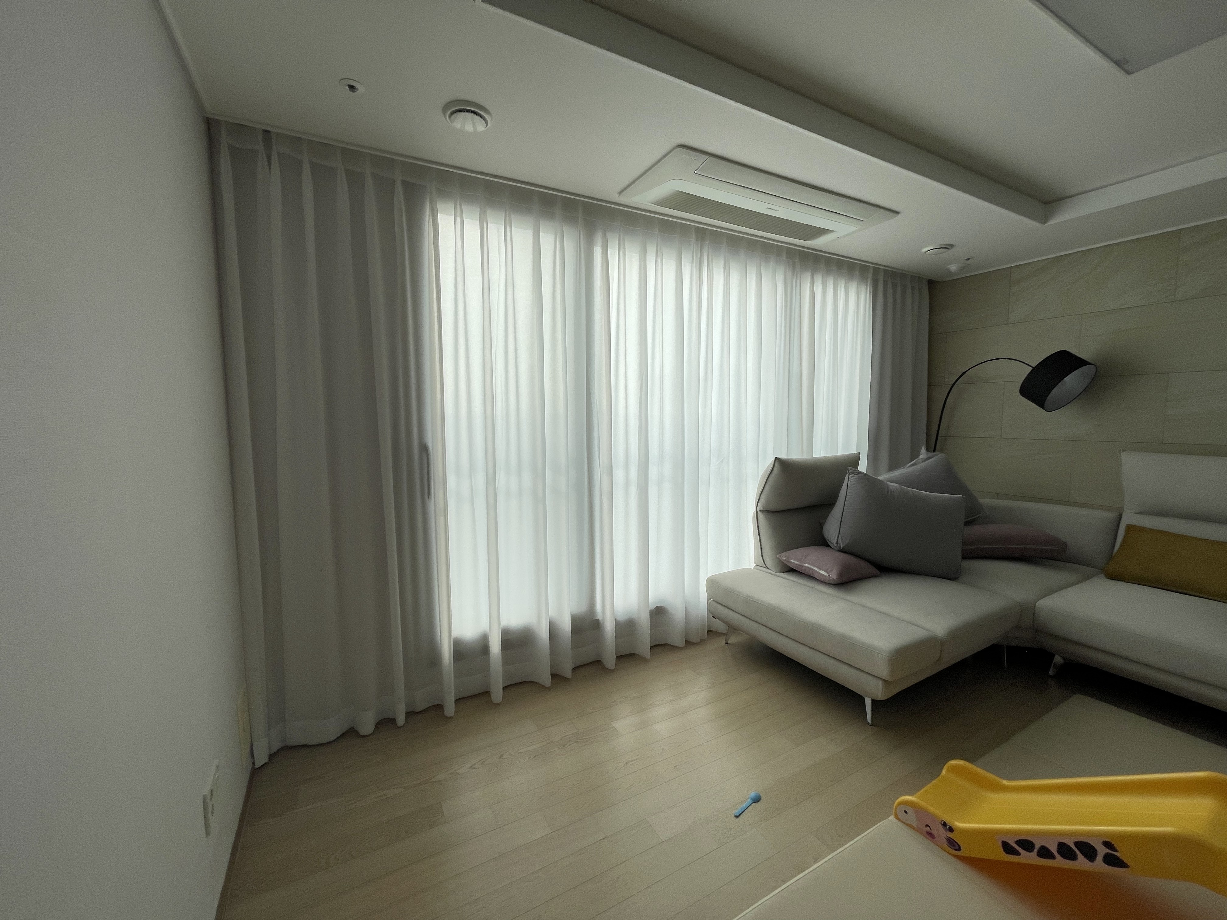 쉬폰 커튼과 밝은색 암막 커튼은 시공 실력이 결과물에 그대로 드러납니다. 주름이 일정하지 않거나 기장이 애매하면 금방 지저분해 보이기 때문입니다. 이번 시공은 프리미엄 커튼·블라인드 업계에서 10년 이상 경험을 쌓은 전문가가 직접 진행했습니다.