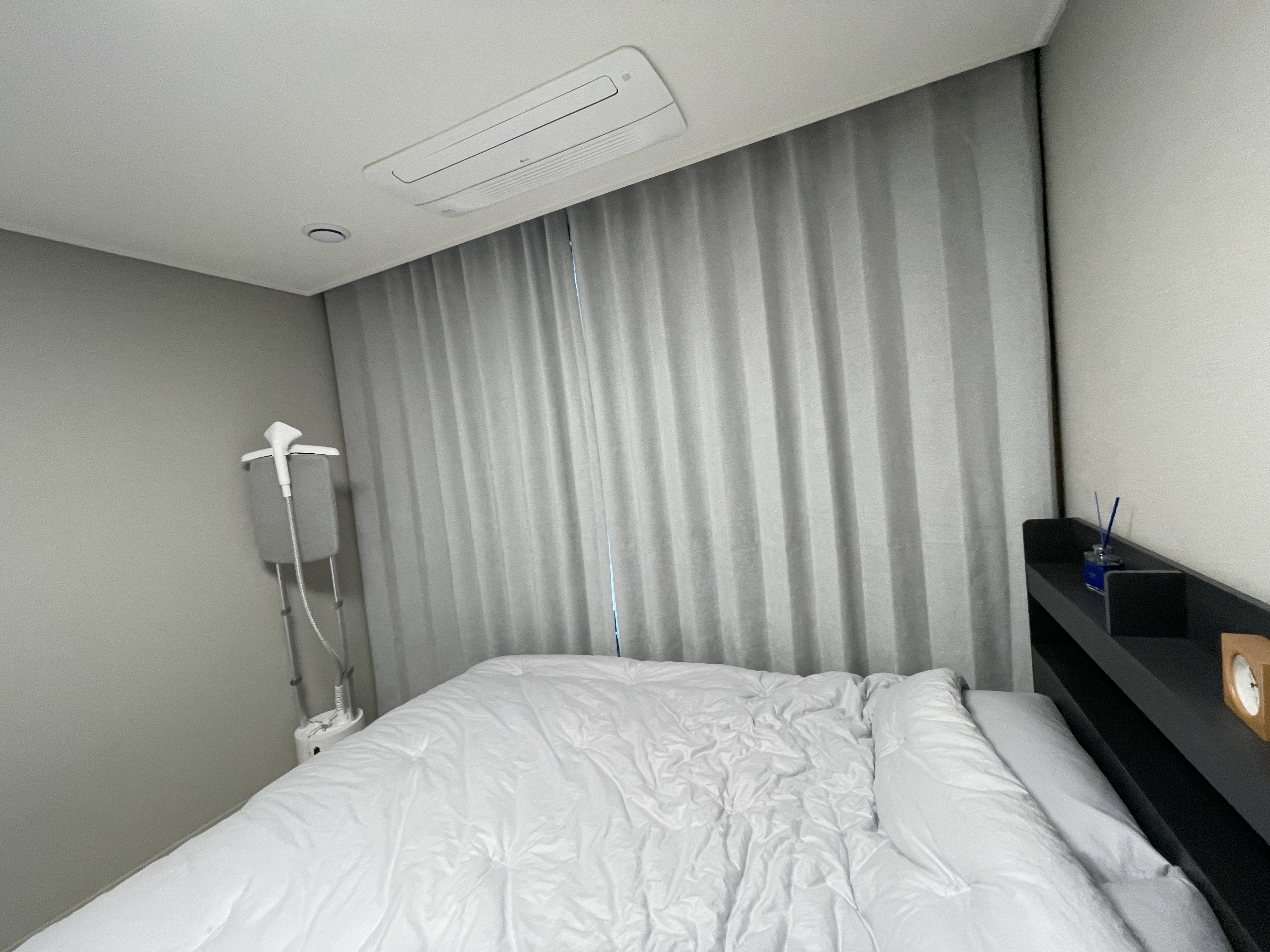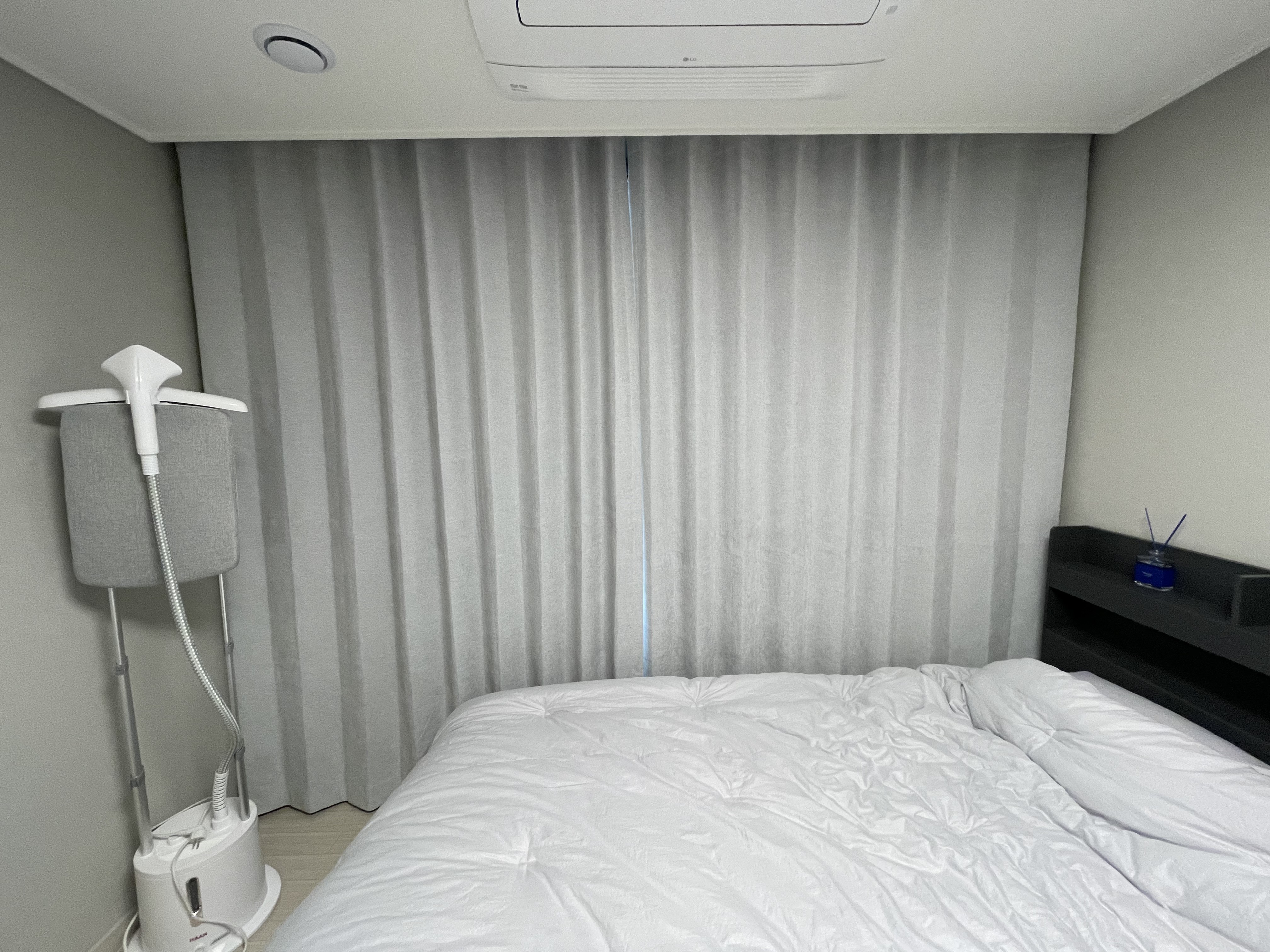 2. 완벽한 숙면을 돕는 안방, 라이트그레이 암막커튼