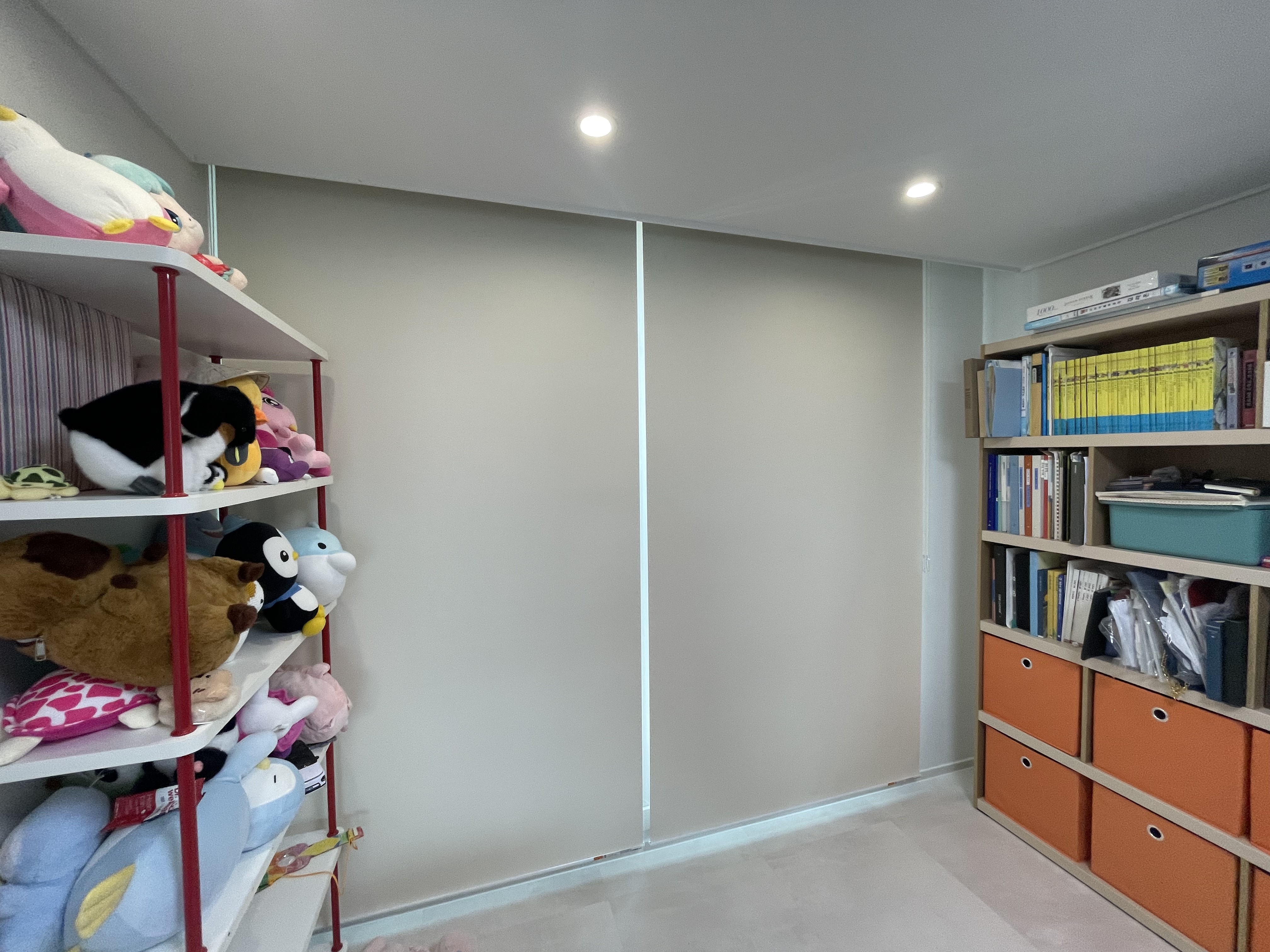 아이들의 성장과 직결되는 수면 환경은 그 무엇보다 중요하죠. 빛에 예민한 아이방에는 '기능이 뛰어난' 고밀도 암막 롤스크린을 시공했습니다.