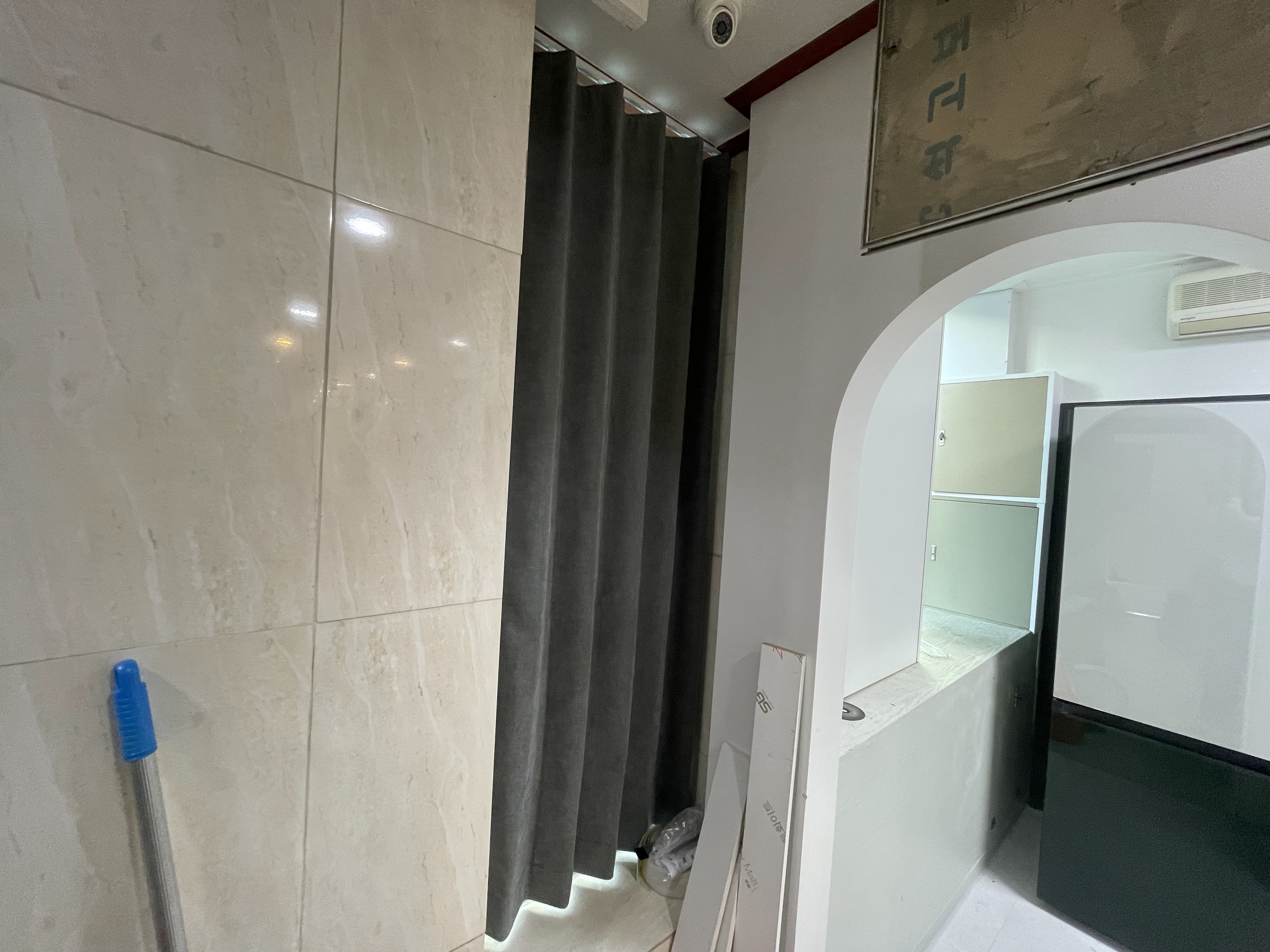 고시원처럼 협소한 공간은 옷가지나 짐들이 많아 자칫 지저분해 보일 수 있습니다. 따라서 커튼은 시선을 잡아주며 공간을 차분하게 눌러주는 색상이 좋습니다. 이번 현장에서는 '인테리어 디자인이 잘 어울리는' 다크그레이 컬러를 선택했습니다.